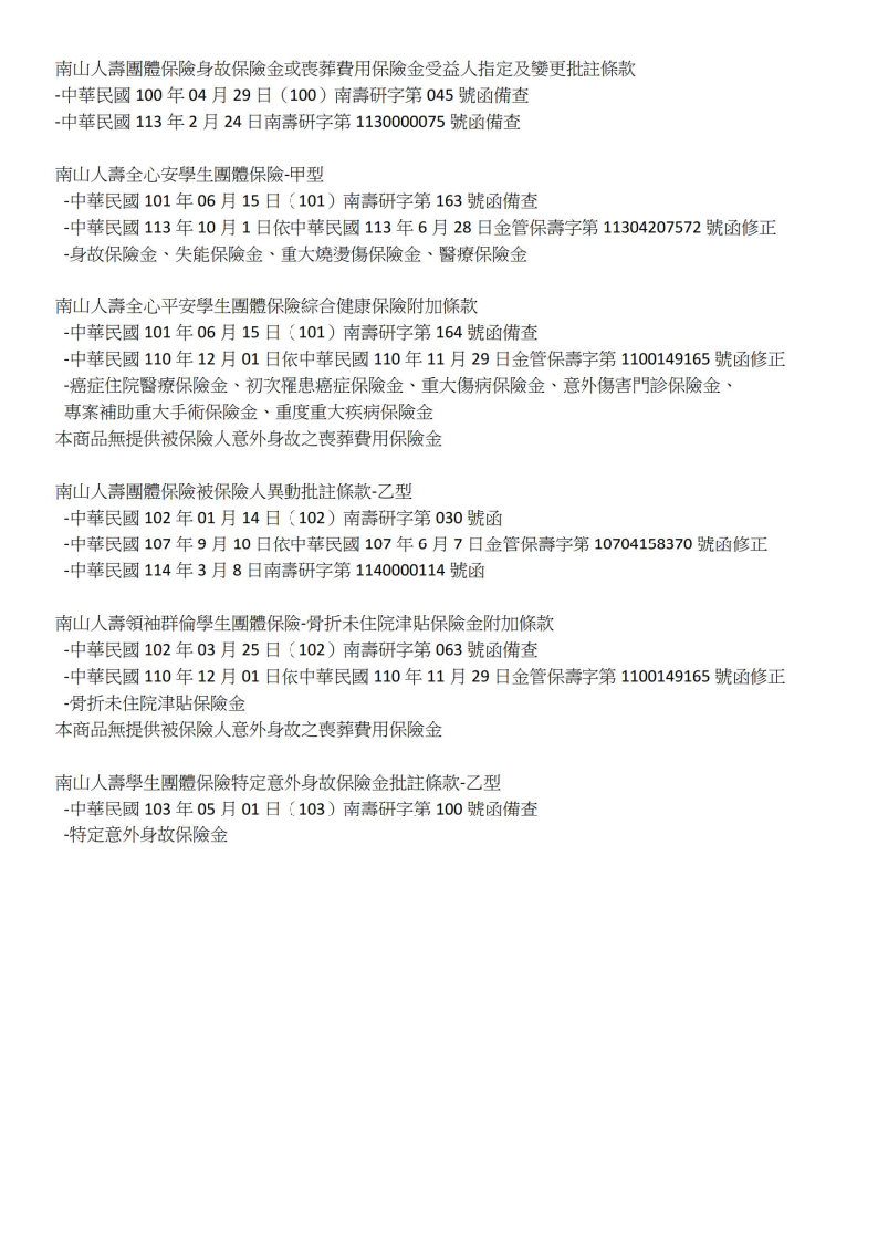 【自114學年度起發生之理賠案件,南山人壽於每週三下午2時至4時,派員於生活輔導組駐點,提供理賠申請及諮詢服務,歡迎同學多加利用】